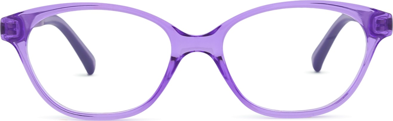 Die lila Farbe der Brillenfassung passt perfekt zu kühlen Hauttönen und