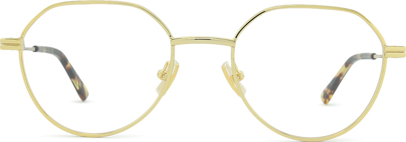 • Die goldene Farbe der Brillenfassung passt perfekt zu warmen Hauttönen und dunkelbraunem Haar.