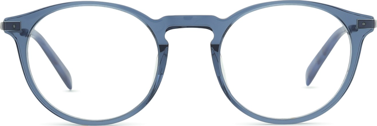 Die blaue Farbe der Brillenfassung passt perfekt zu kühlen Hauttönen und