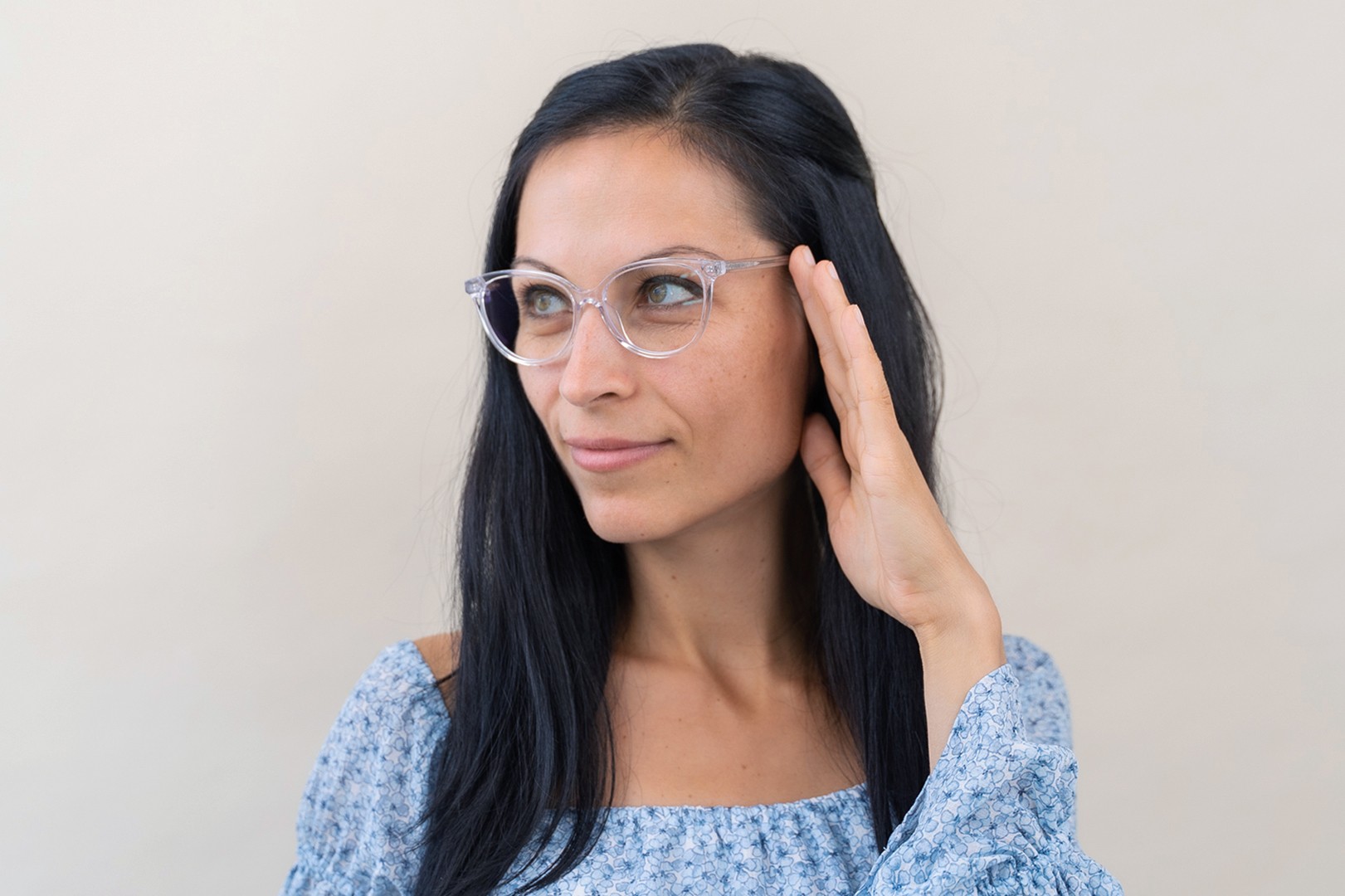 - Der transparente Rahmen passt sowohl zu kühlen und warmen Hauttönen als auch zu allen Haarfarben perfekt.