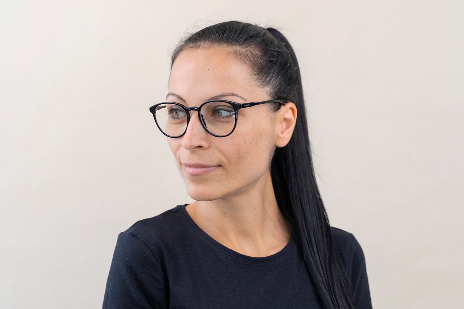 - Die schwarze Farbe des Rahmens passt perfekt zu einem kühlen Hautton und hellblondem, hellbraunem oder schwarzem Haar.