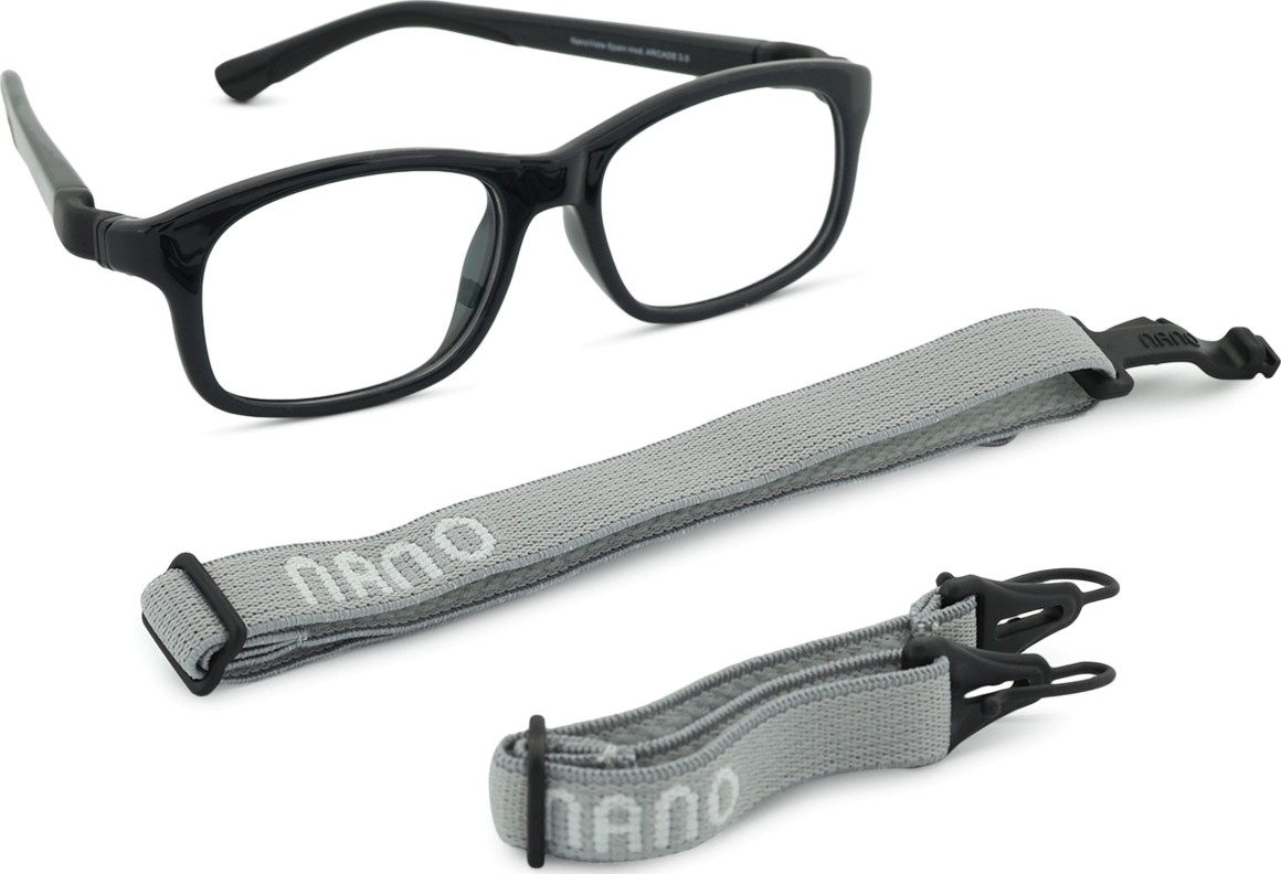 Das Modell Arcade 3.0 ist mit zwei verstellbaren Textilbändern ausgestattet, die dazu beitragen, dass die Brille nicht verloren geht und bei verschiedenen Aktivitäten der Kinder besser auf dem Kopf sitzt.