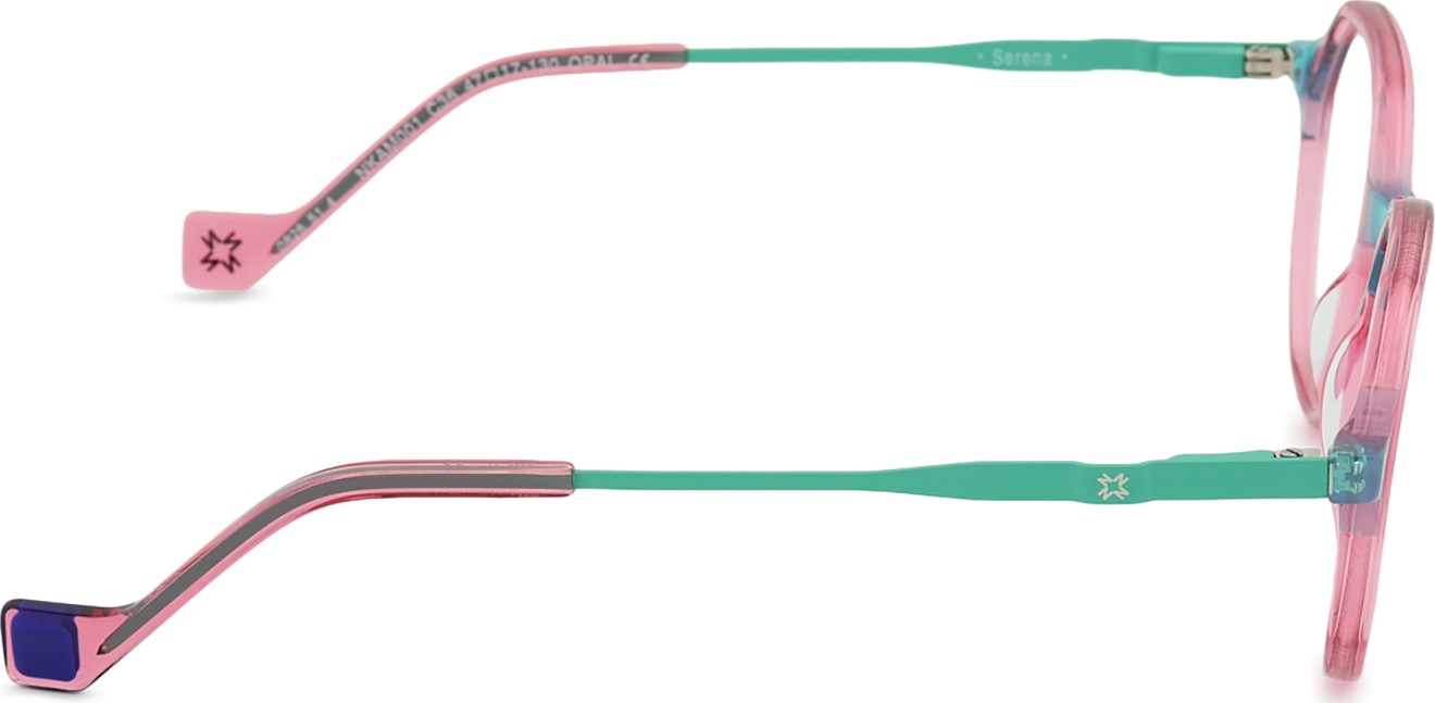 - Die rosa Farbe der Brillenfassung passt perfekt zu kühlen Hauttönen und hellbraunem oder hellblondem Haar.
