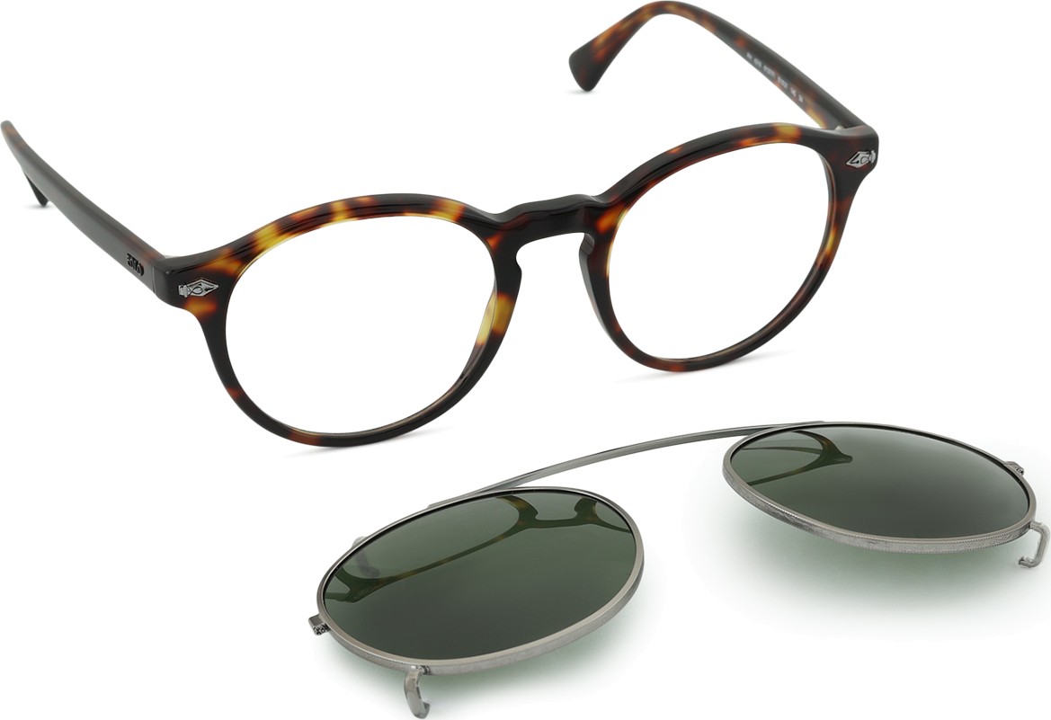 Zur Brille gehört auch ein zusätzlicher Sonnenclip, der sich leicht am Brillengestell befestigen lässt und die Brille in einen Sonnenschutz verwandelt. Der Clip passt sich perfekt an die Form des Rahmens an und lässt sich sehr schnell und einfach anbringen. Wenn Sie jedoch höhere Plus-Dioptrien haben, ist es notwendig, eine dünnere Version der Gläser zu wählen, damit der Clip nicht die vordere sphärische Fläche der Gläser berührt und richtig auf den Rahmen passt.
