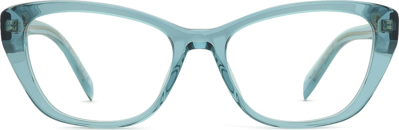 Die blaue Farbe der Brillenfassung passt perfekt zu kühlen Hauttönen und