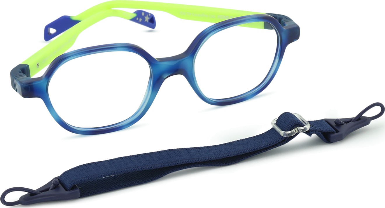 Die blaue Farbe der Brillenfassung passt perfekt zu kühlen Hauttönen und